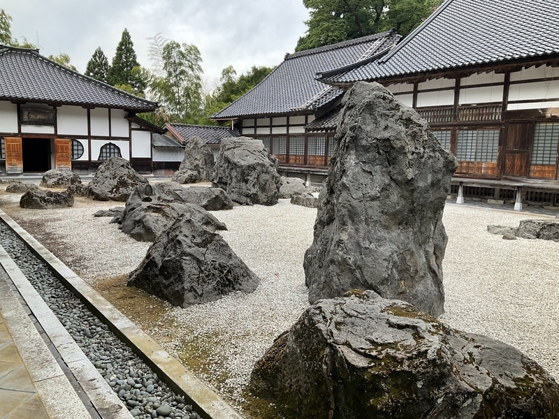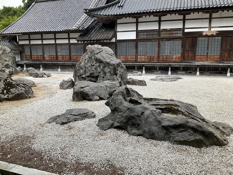 なんと枯山水の石庭があります。ひとつひとつの石がものすごく大きいです。