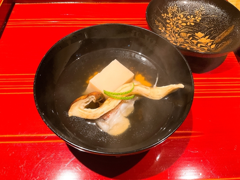 お出汁はとてもお上品であっさりでした。松茸は結構大きいものの1/4でした。