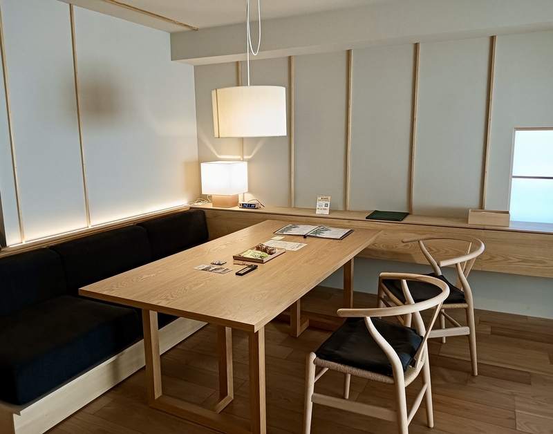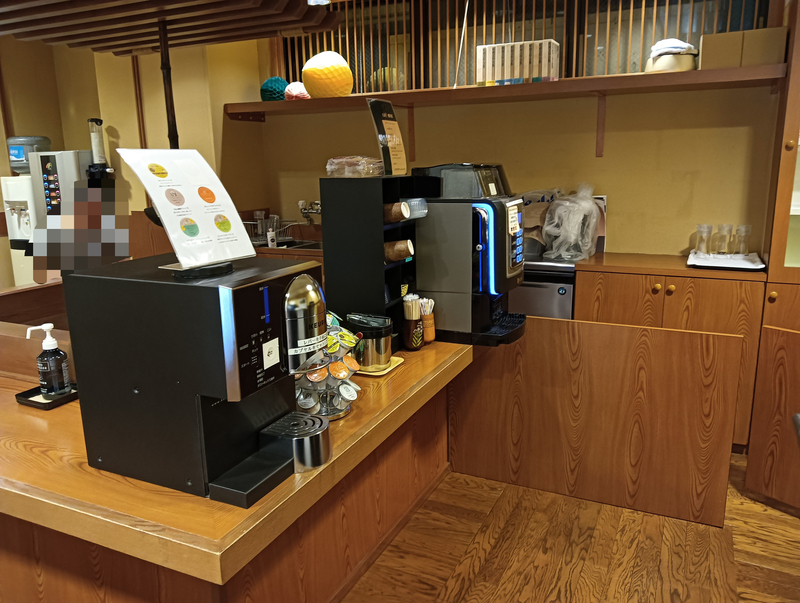 1階にあるラウンジです。冷水、玄米茶、ルイボスティーなどのドリンクバー、コーヒーマシーン、生ビールが無料でいただけます。