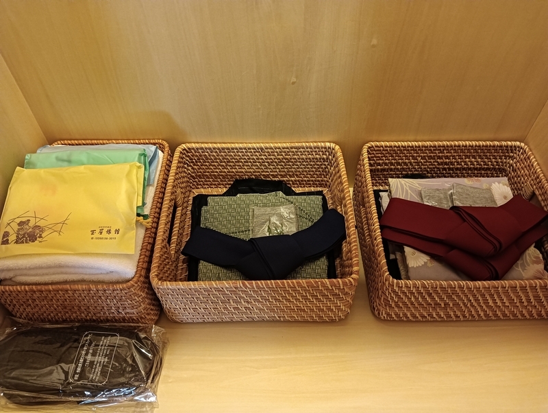 バスローブもあり、バスタオルもたっぷりあります。大浴場へのかごもあります。