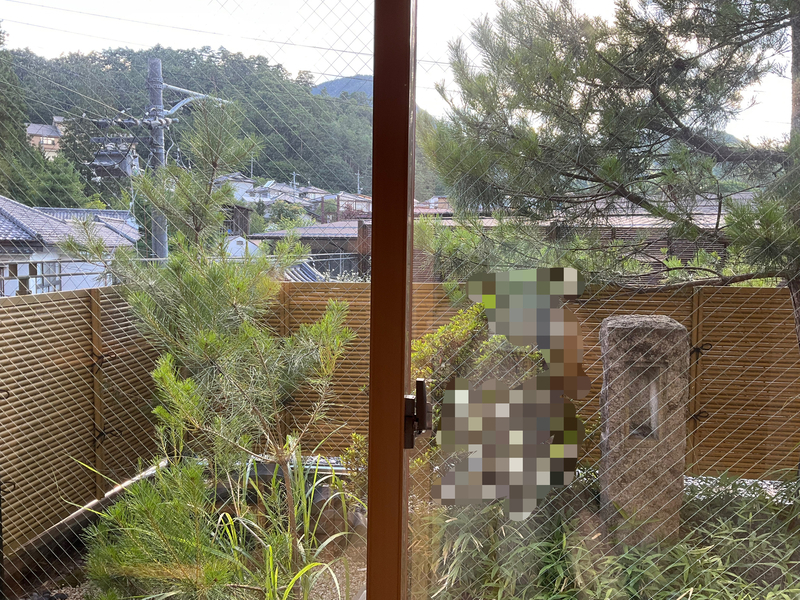窓からの眺めは中庭があります。日中は暑くて障子を閉めてました。エアコンが2台あるので、お部屋の中はちゃんと涼しいです。空気清浄機もあります。